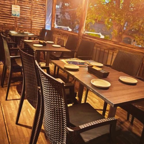 テーブル席です。テラス席も2名×6席あり人数により調整可能です。15名様から25名様くらいまでで貸切も可能!テラスと繋げれば40名様まで対応可能!